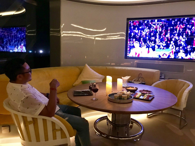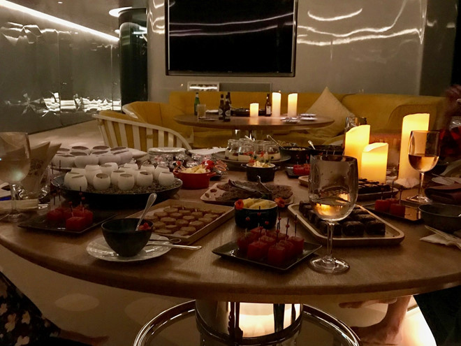 Không gian bữa tiệc trên tàu, nơi có ti vi chiếu lại trận đấu đầy cảm xúc của Tottenham