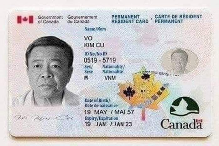 Hình: Thẻ thường trú nhân (Permanent resident card) của Võ Kim Cự