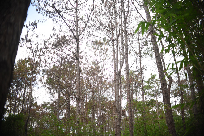 Khu rừng thông rộng 10ha bị đầu độc là một trong 2 khoảnh rừng còn sót lại tại khu vực này - cả hai khoảnh rừng đều nằm lọt thỏm giữa những vườn cà phê xanh mướt.