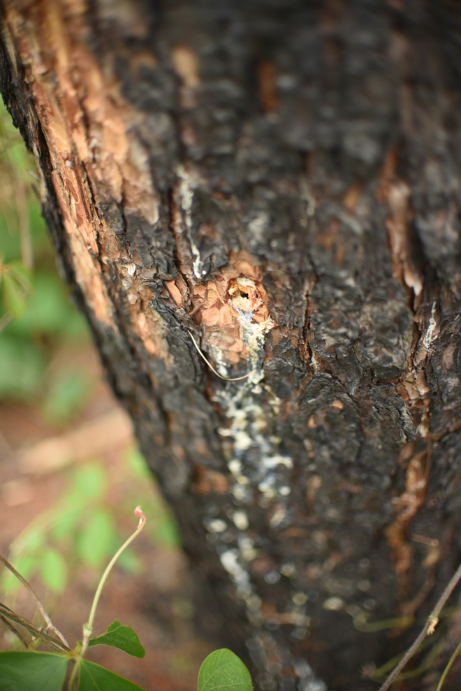 Theo quan sát, rừng thông bị đầu độc không bỏ sót một cây. Từ những vị trí rìa rừng tiếp giáp ngay với đường đi và gần nhà dân cho tới những cây nằm trong vùng lõi.