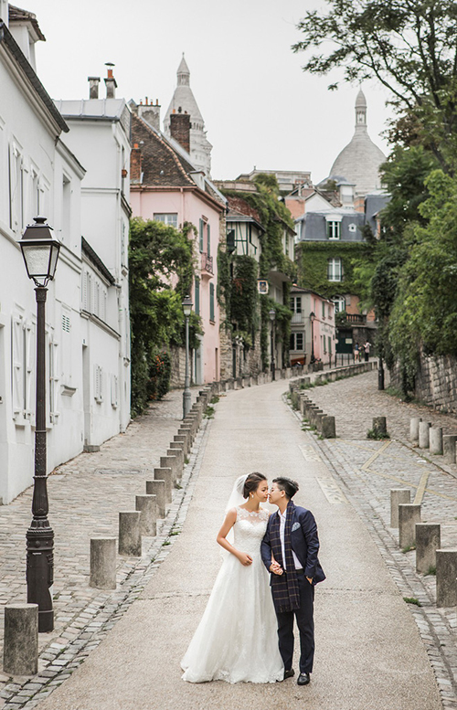 Dưới chân tháp Eiffel, hai người đã cho ra đời một bộ ảnh cưới mang chủ đề về một câu chuyện tình Paris dành cho riêng mình. Đó vừa là những khoảnh khắc hạnh phúc, vừa là đánh dấu cho cái kết đẹp mà Khương và Ngọc Anh xứng đáng có được sau biết bao vui buồn suốt 3 năm bên nhau