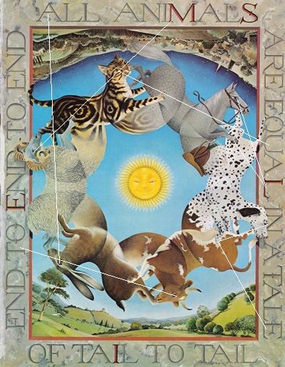 Bằng cách nối đường thẳng từ mắt đến chân của mỗi con vật, từ được tìm thấy là Amulet. Ảnh: Deviantart.