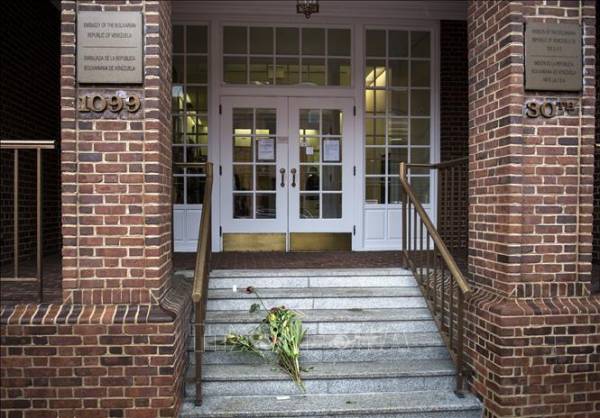 Bên ngoài Đại sứ quán Venezuela tại Washington, DC, Mỹ.