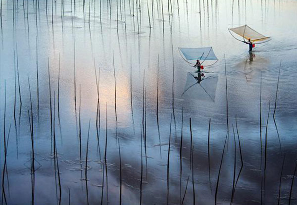 Chuẩn bị máy ảnh thật tốt cho bữa tiệc mặt bình minh và hoàng hôn ở Bắc Kì. Ánh nắng vàng buổi sáng buông xuống trên biển, biến bãi bồi thành một thế giới đầy màu sắc mơ màng. Ánh nắng phản chiếu trên mặt nước lung linh, bóng của ngư dân, thuyền đánh cá… trở thành một bức tranh rất hài hòa với sự tương phản của ánh sáng và bóng tối diệu kỳ.