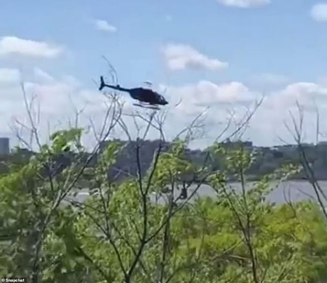 Trực thăng xoay vài vòng trước khi lao xuống sông (Ảnh: Snapchat)