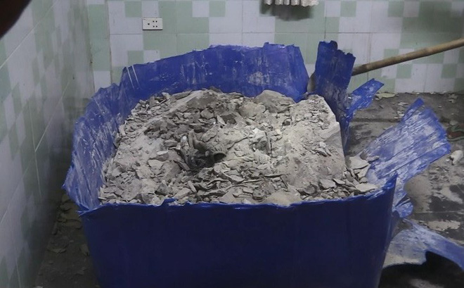 Tối 15/5, khi phá một phần bê tông thì bên trong lộ ra một phần thi thể người kèm theo mùi hôi thối nồng nặc. Mọi người không đập khối bê tông nữa mà báo ngay cho công an xã.
