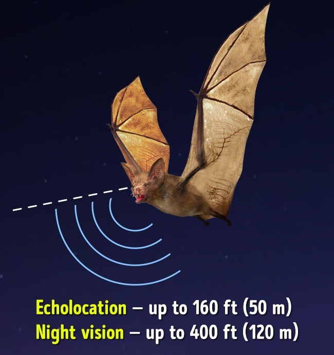 Nhưng thực ra, tất cả các loài dơi (khoảng hơn 1.100 loài) đều có thị lực khá tốt ngay cả trong đêm, dù không bằng các loài vật săn mồi khác như cú mèo. Có điều, chúng chủ yếu dùng sóng siêu âm để định vị, nên xét ra chúng "nhìn" trong đêm rõ hơn bất kỳ loài vật nào trên đời.