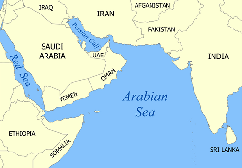 Vị trí Biển Arab và Iran. Đồ họa: Wikipedia.