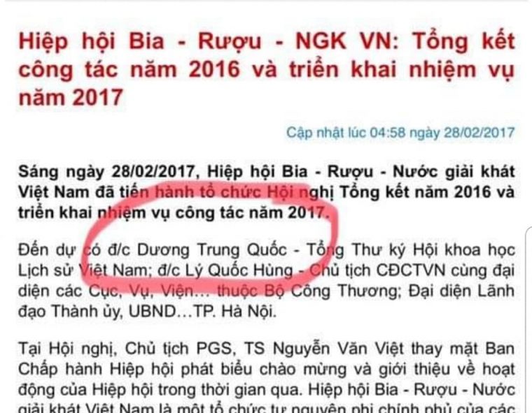 Phát ngôn trên chứng tỏ Dương TQ là một chính khách nghiện bia rượu. Thảo nào ông ta mang danh là nhà sử học nhưng không có công trình sử học nào. Chỉ thấy xuất hiện trong các sự kiện để làm dáng, khoe mồm, vì sau các sự kiện là có mâm cỗ bia rượu uống mừng.