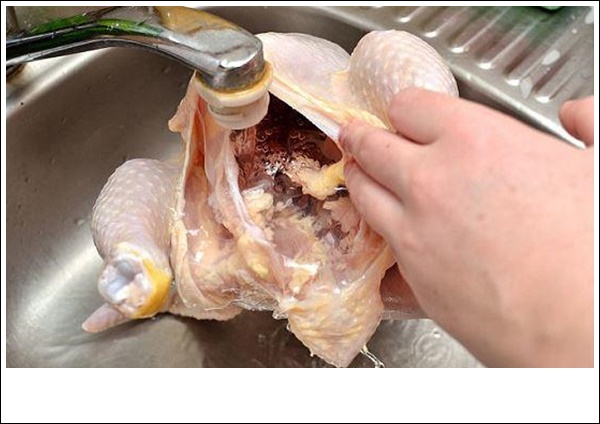 Làm sạch gà cùng với nước (Ảnh:Eva.vn)