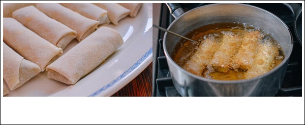 Làm tương tự với phần nhân và vỏ chả giò. Đun nóng dầu ăn trong chảo, cho chả giò trái cây vào chiên chín vàng giòn là được. Khi ăn bạn có thể chấm chả giò với xốt mayonnaise, tương ớt hay tương cà đều rất ngon.