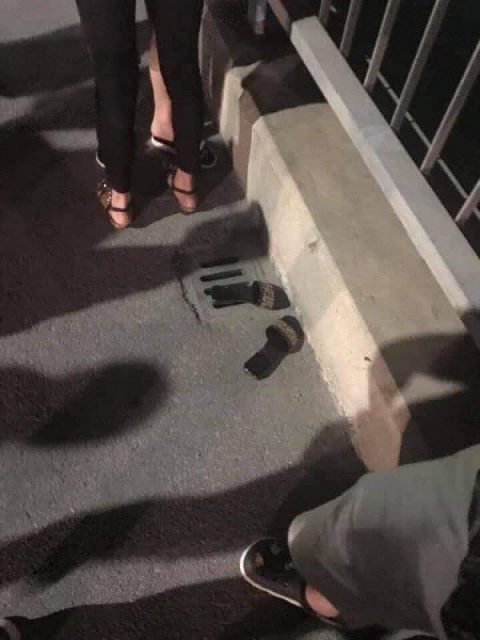 Cô gái để lại đôi dép trước khi nhảy cầu Bãi Cháy. (Ảnh: VOV)