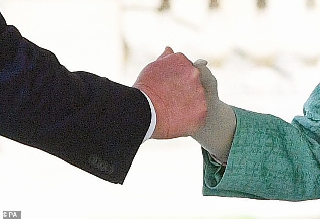 Ông Trump có thói quen bắt tay đối phương khá lâu, tuy nhiên lần này ông chỉ thực hiện cử chỉ xã giao với Nữ hoàng trong vài giây.