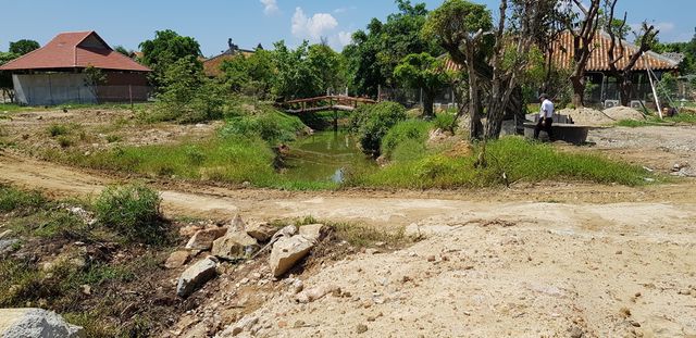 Phần tường resort chặn trên đất công, đoàn công tác đã phải leo qua tường này để vào tiếp cận resort