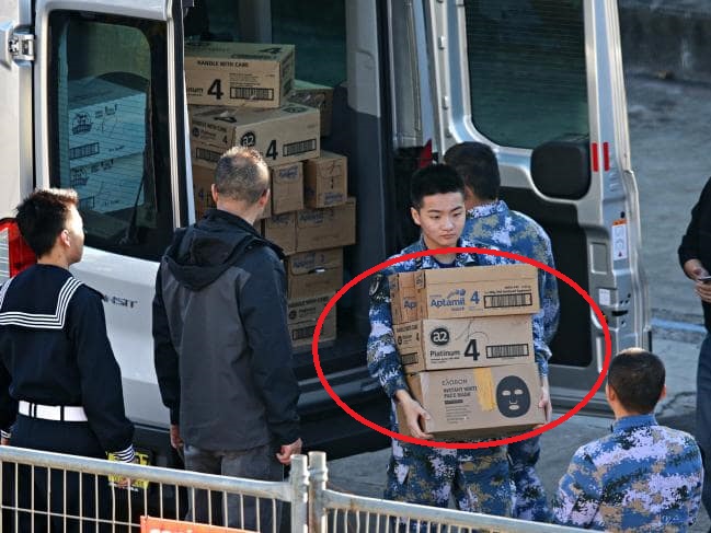 Theo News.com.au, binh sĩ Trung Quốc được trông thấy đang đưa nhiều thùng sữa công thức trẻ em nổi tiếng của Úc lên tàu chiến trước khi rời cảng Sydney hôm 7/6.
