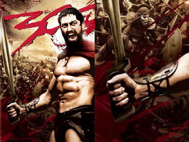 300 (2006): Với 300, khán giả chứng kiến sự chiến đấu anh dũng của vua Leonidas I (Gerard Butler) trước quân đội Ba Tư. Ý chí kiên cường của Leonidas được truyền tải gần như trọn vẹn qua biểu cảm của nam diễn viên Gerard Butler và tông màu đỏ chủ đạo trên poster phim. Tuy nhiên, nhiều người hâm mộ cũng phát hiện ra lỗi thiết kế không đáng có nằm ở sự rời rạc giữa thanh kiếm và bàn tay của Butler.