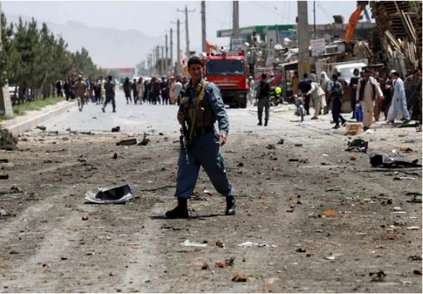 Hiện trường một vụ đánh bom tự sát ở thủ đô Kabul - Afghanistan hôm 31-5 Ảnh: Reuters