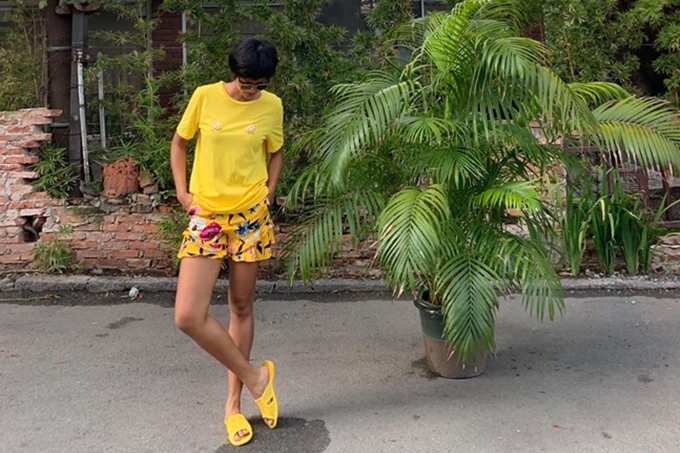 Trong các bức ảnh vừa đăng tải, H'Hen gây chú ý với đôi dép tổ ong màu vàng nổi bật. Cô muốn tạo sự thoải mái cho đôi chân đang còn nhiều thương tích sau khi tham gia 'Cuộc đua kỳ thú'.