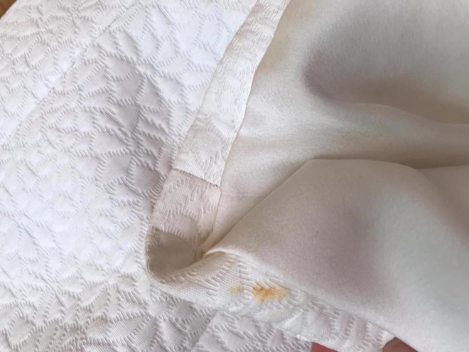 Hà Phương cho rằng chiếc váy của mình trước khi thanh lý vẫn trắng và đẹp, không có những vết ố vàng như N.N chụp lại.