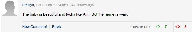 Tuy nhiên, một vấn đề khác được dân tình quan tâm không kém chính là cái tên có phần kỳ lạ mà vợ chồng Kim quyết định đặt cho con trai út. Nhiều người đồng tình rằng Psalm Ye West là một cái tên thật sự khó hiểu. Trước Psalm, tên của North, Saint và Chicago cũng khiến dân tình hoang mang vì được xem là khá dị. Quả thật, "nữ hoàng thị phi" luôn biết cách gây sự chú ý của công chúng, thậm chí là cách đặt tên con cũng gây tranh cãi hồi lâu. Độc giả tờ Dailymail đã bình luận: