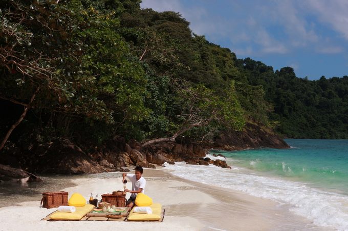 Bên cạnh đó, khách cũng có thể đặt một bữa picnic kiểu "sang chảnh" ngay trên bãi biển. Chỗ ngồi, đồ ăn được nhân viên set-up đẹp cho bạn sống ảo. Giá phòng thấp nhất khoảng 1.000 USD/đêm (khoảng 23 triệu đồng). Còn nếu muốn thuê villa có bãi biển riêng dành cho gia đình, bạn phải chi tầm 5.000 USD/đêm (khoảng 115 triệu đồng).