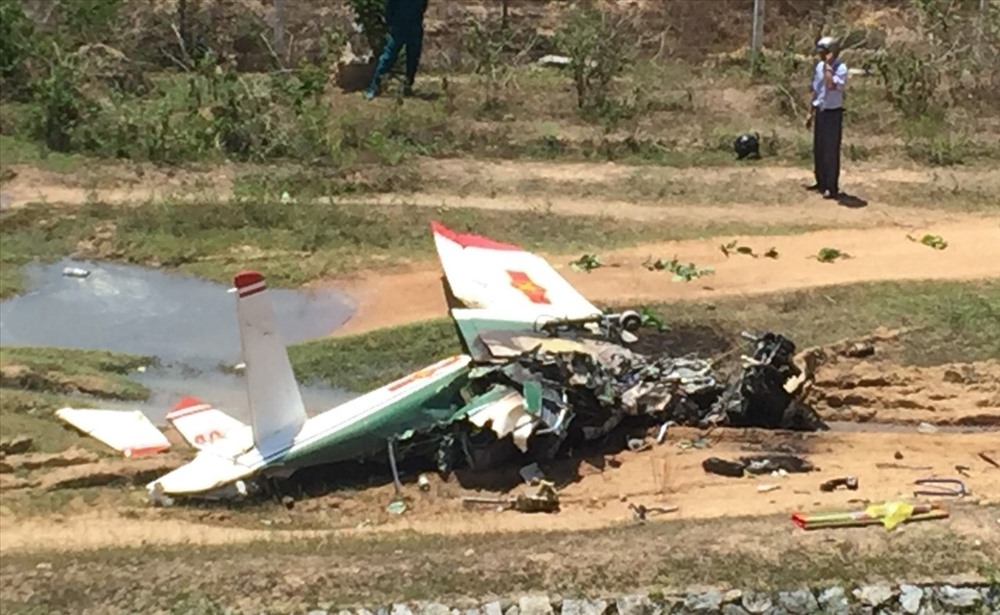 Khu vực máy bay rơi thuộc địa phận hồ suối Dầu, xã Suối Tân (H. Cam Lâm, Khánh Hòa). Tại hiện trường, 2 phi công được xác định đã tử nạn. Khu vực máy bay rơi lửa đang bốc cao.