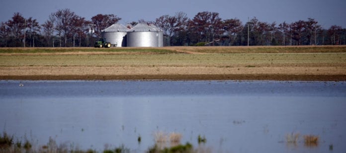 Mưa bão tiếp tục gây thêm lụt lội dọc theo sông Mississippi River, làm khổ nông dân. (Hình: AP Photo/Rogelio V. Solis)