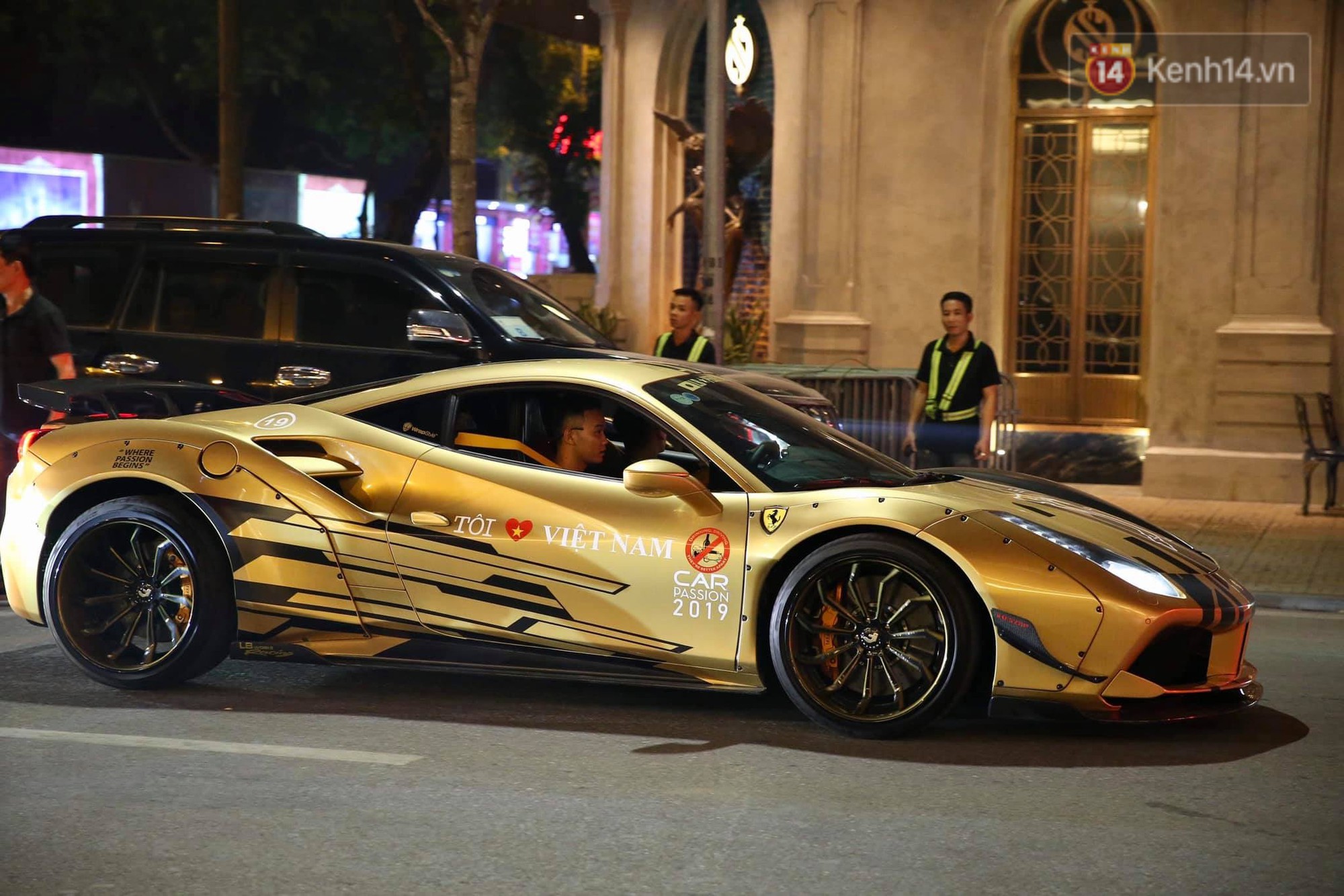 Sau khi hội ngộ cùng dàn siêu xe gần 300 tỷ tại khách sạn JW Marriott, khoảng 19h30, doanh nhân Nguyễn Quốc Cường cùng vợ Đàm Thu Trang lên siêu xe rời khách sạn hoà vào dòng siêu xe di chuyển tới khu vực Lý Thường Kiệt để dùng bữa tối và giao lưu.