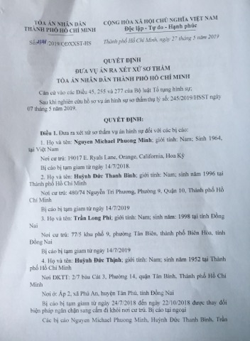 Tòa án nhân dân thành phố Hồ Chí Minh quyết định đưa vụ án “Nguyen Michael PhuongMinh” ra xét xử: