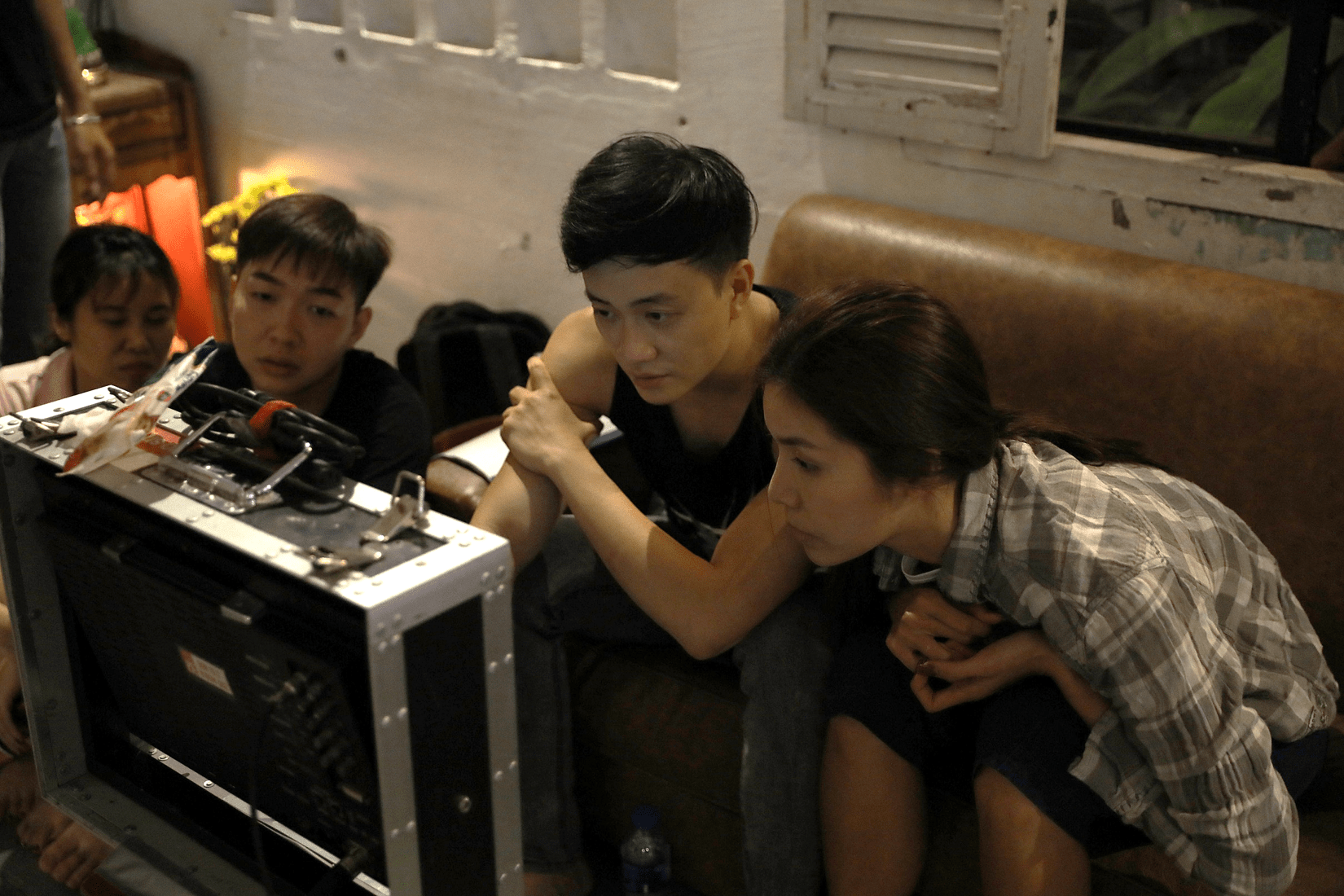 Minh Tú cùng đạo diễn xem qua những thước phim đầu tiên trong cảnh quay thử.