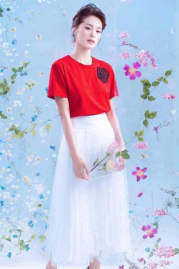 Điểm nhấn của bộ sưu tập là những họa tiết hoa hồng. Loài hoa mơ mộng nhưng đầy quý phái này được khắc hoạ tinh tế và phá cách bằng kĩ thuật cắt ghép, tạo hình, với nét thanh lịch là yếu tố chủ đạo và ấn tượng lưu lại sâu sắc nhất.