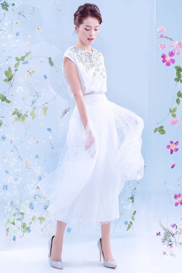 Tiếp nối phong cách tối giản và thanh lịch đặc trưng là tông màu trắng kết hợp hồng pastel nhẹ nhàng, nhưng lại vô cùng tươi mới. Dễ dàng nhận thấy vẻ cá tính mà thanh lịch, đơn giản mà đầy tinh tế của Elise trong những bộ thiết kế. Đây cũng chính là sức hút khiến Hạ Vi mê mẩn.