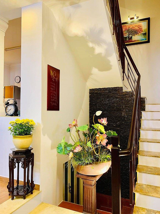 Là người mang tư tưởng truyền thống nên căn nhà của Thúy Nga được thiết kế và bố trí đậm chất Á Đông với những gam màu trầm, tối.