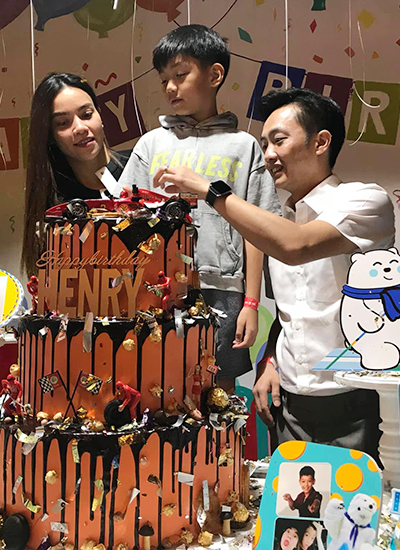 Không gian tiệc được trang trí màu sắc với nhiều khung ảnh của Subeo bên bố mẹ. Bánh sinh nhật ba tầng lớn có dòng chữ "Happy birthday Henry". Các chú hề biểu diễn những trò ảo thuật, xiếc góp vui. Trước đó, Hà Hồ đến lớp con trai dự sinh nhật cùng cậu bé và bạn bè cũng như làm buổi tiệc nhỏ cho con quây quần bên ông bà ngoại cũng như bạn trai cô - Kim Lý.