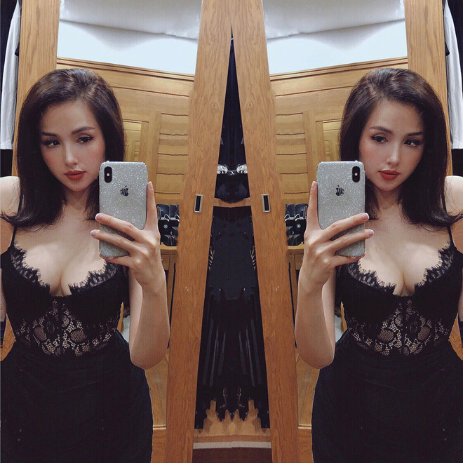 Trong ảnh, Tâm Tít diện váy ren 2 dây khoét sâu, khoe trọn ṿng 1 đầy đặn và ṿng 2 thon thả, cuốn hút.