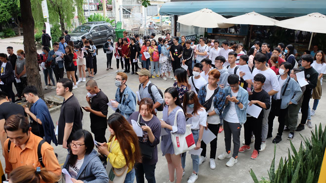 Hàng trăm fan xếp hàng, đội nắng chờ gặp Minh Hằng từ lúc sáng sớm.