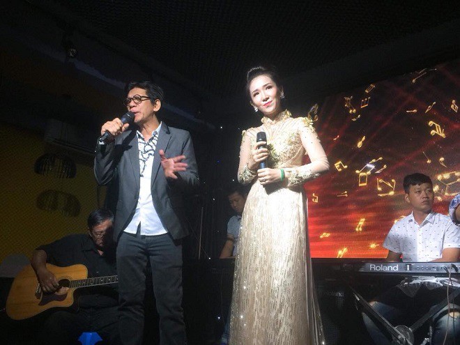 Vợ chồng ca sĩ Đức Minh - Anh Thư trên sân khấu.