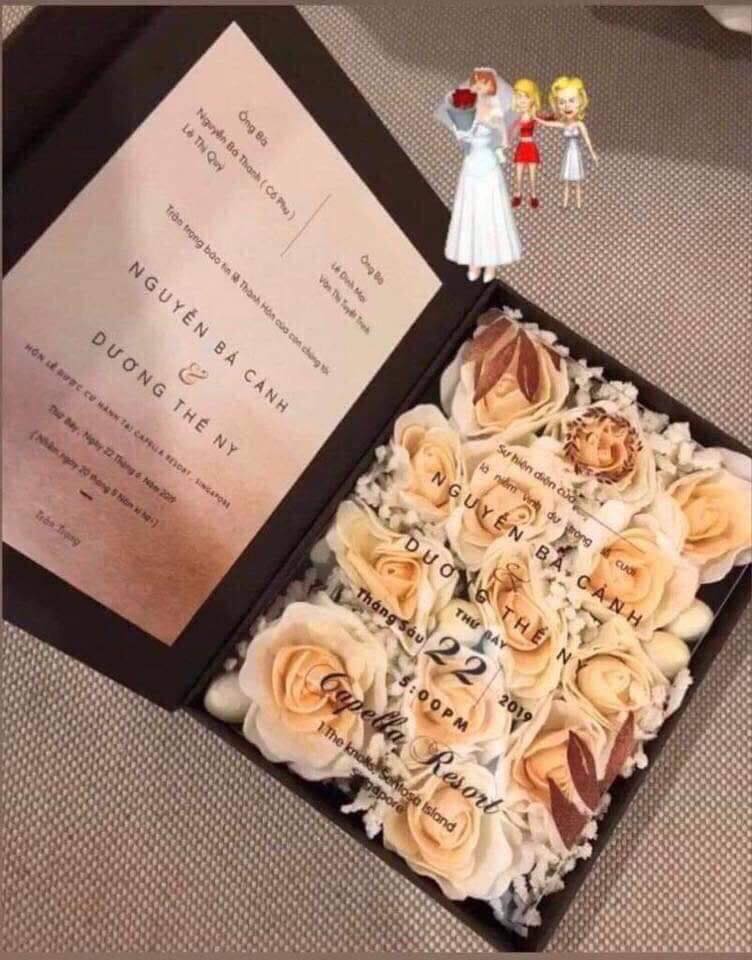 Tấm thiệp cho thấy lễ cưới được tổ chức tại khách sạn 5 sao Capella.