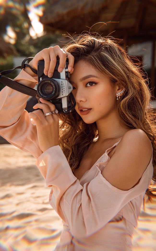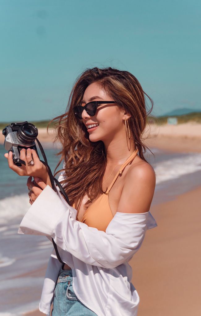 Trong các bức ảnh, nữ diễn viên khoe dáng với bikini, crop-top hay bralette. Đa số trang phục đều có màu sắc trung tính, mang phom dáng ôm sát hoặc cut out tinh tế, giúp cô nàng khoe vóc dáng “đồng hồ cát”.