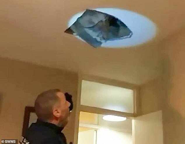Bị truy đuổi, tội phạm trốn lên mái nhà nhưng lại làm sập trần suýt trúng đầu cảnh sát