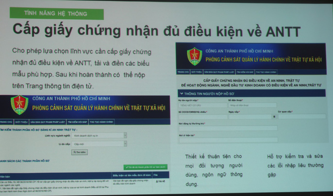 Phát biểu tại buổi ra mắt, Thiếu tướng Trần Đức Tài - Phó Giám đốc Công an TP HCM cho biết: Hiện đại hóa về quản lý hành chính sẽ giúp người dân được hưởng lợi nhiều nhất. Việc ra mắt Trang thông tin điện tử cung cấp dịch vụ công trực tuyến của Phòng Cảnh sát QLHC về TTXH sẽ nâng năng suất lao động, phục vụ nhân dân. Đó cũng là mục đích của lực lượng công an, phục vụ vì nhân dân.