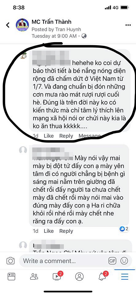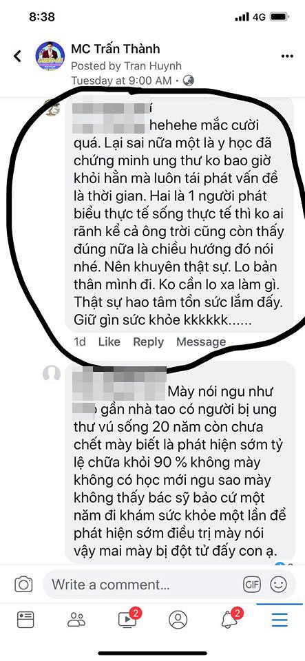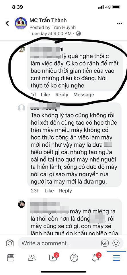Bạn có thể không thích tôi nhưng không thể nhân danh bất cứ cái gì mà vào nhà tôi phỉ báng và nguyền rủa gia đình và vợ tôi như thế! Nếu bạn chỉ viết vu vơ 1 comment tôi cũng còn bỏ qua được. Đằng này là trả lời từng fan của tôi và liên tục nguyền rủa gia đình tôi bằng những lời cay nghiệt và tỏ ra cực kỳ khoái chí với việc đó.