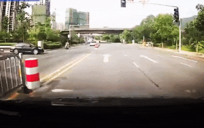 Sự việc xảy vào khoảng 8h sáng 1/7 tại đường Dong Xin số 6 ở thị trấn Tam Minh, tỉnh Phúc Kiến, Trung Quốc. Đoạn video cho thấy một chiếc xe máy đã đâm vào ô tô màu đen sau khi anh ta vượt đèn đỏ.
