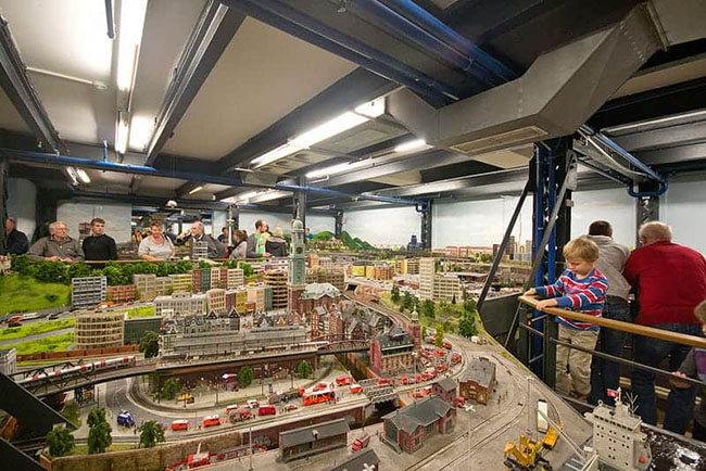 Mô hình đường sắt với tuyến đường sắt được chia thành 9 phần khác nhau mô tả cảnh từ Châu Mỹ, Scandinavia, Ý và tất nhiên là thành phố Hamburg. Thậm chí còn có một phần của một sân bay nơi bạn có thể xem máy bay hạ cánh. Với hơn 15.400 đường ray trên hai tầng có rất nhiều thứ để du khách quan sát khi bạn đi lang thang qua các vùng đất khác nhau.