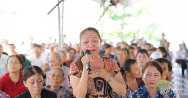 Người dân Khánh Sơn khóc trong buổi đối thoại với chính quyền.