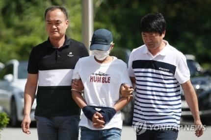 Nghi phạm trong vụ đánh đập vợ người Việt, làm rúng động dư luận Hàn Quốc tuần qua, trình diện tại toàn án quận Gwangju sáng 8/7. Ảnh: Yonhap.