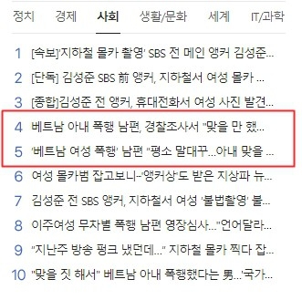 Đến sáng nay, bài báo về vụ cô dâu Việt bị chồng Hàn đánh vẫn nằm trong top 10 bài đăng xã hội được quan tâm nhất cổng thông tin Naver.