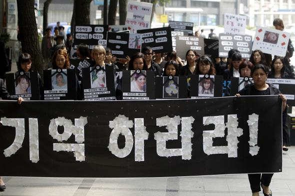 Những cô dâu là người nhập cư tháng 6/2011 biểu tình trước trụ sở Ủy ban Nhân quyền Quốc gia Hàn Quốc (NHRCK) phản đối bạo hành gia đình. Ảnh: Hankyoreh.