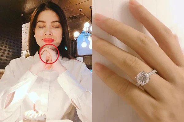 Nhiều mỹ nhân Việt cũng từng đính ước với bạn trai bằng những chiếc nhẫn kim cương "siêu to khổng lồ". Dịp 14/2 vừa qua, Phạm Hương xác nhận đã đính hôn cùng bạn trai ở Mỹ. Chiếc nhẫn cô được tặng có kiểu dáng, mức giá tương tự Đông Nhi.