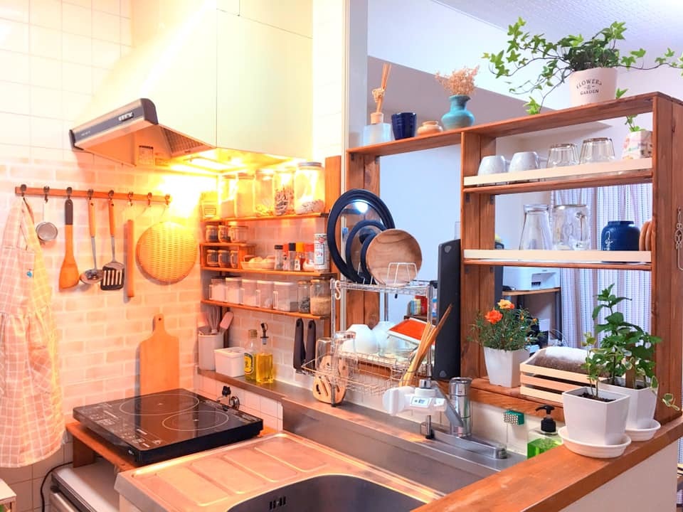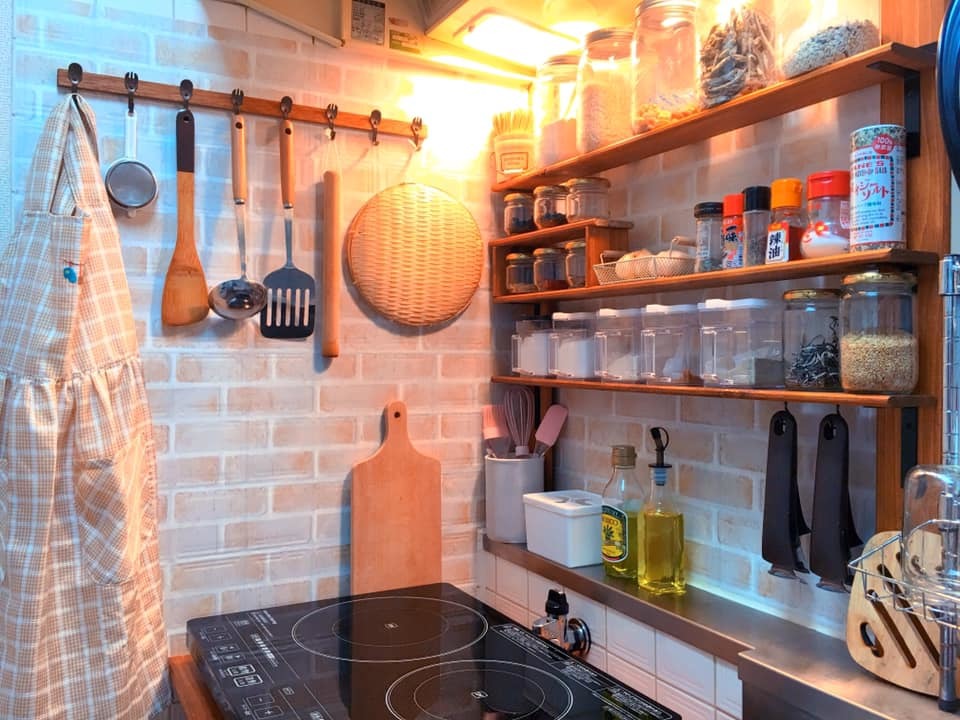 Thanh Trúc cũng cho biết, cô không đóng hay khoan lên tường bất cứ lỗ đinh nào mà dùng eke nẹp giữ. ‘Ở Nhật thường xuyên có động đất nhưng trải qua vài trận động đất nhẹ, những chiếc kệ bếp vẫn an toàn, không bị đổ sập’, cô nói.